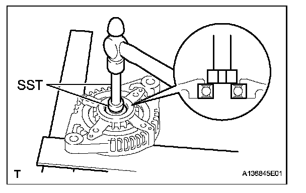 b. Using SST and a hammer, tap out the bearing.