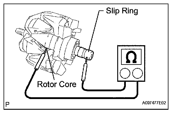2. Measure the resistance between the slip ring and rotor core.