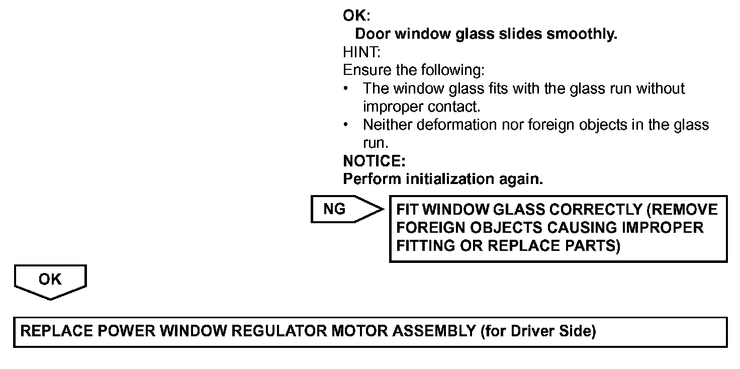 - When the power window regulator motor assembly (on the driver side) is reinstalled or replaced, the power window control system must be initialized.