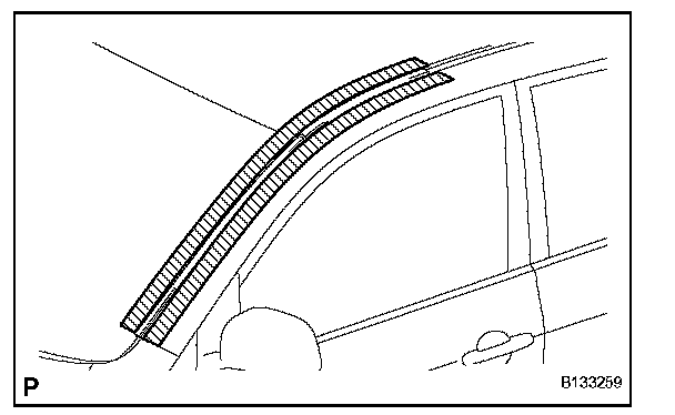 a. Apply protective tape to the outer surface of the vehicle body to prevent scratches. Using a heat light, heat the moulding to 40 to 60 degrees C (104 to 140 degrees F).