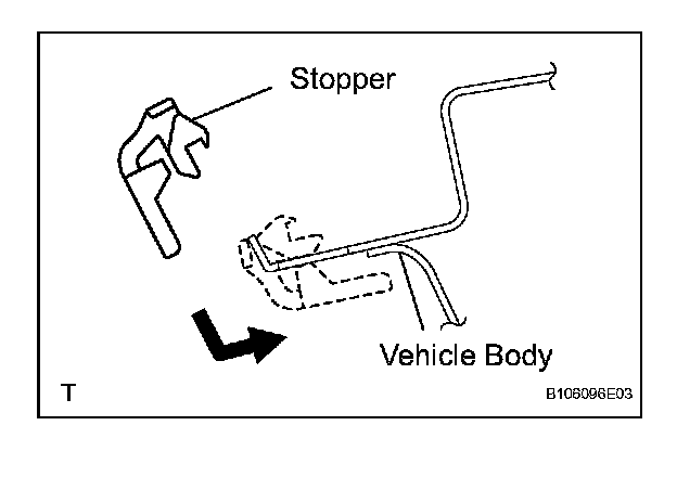 a. Install 2 new stoppers to the vehicle body as shown in the illustration.