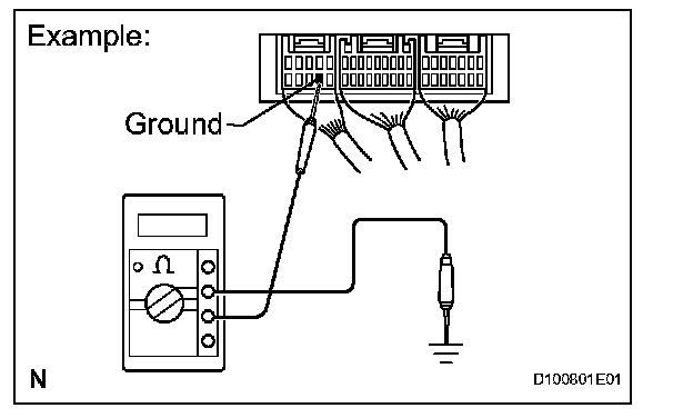 1. Measure the resistance between the ECU ground terminal and body ground.