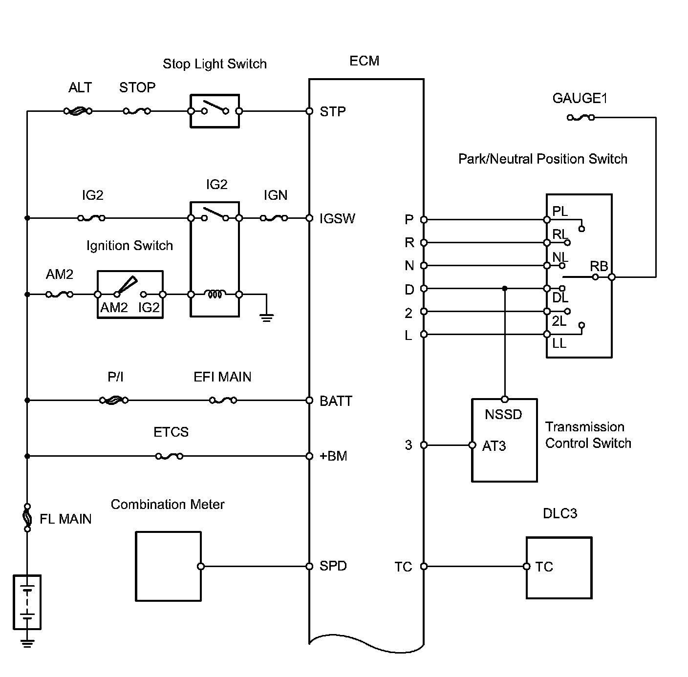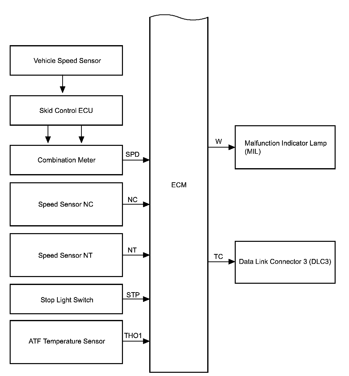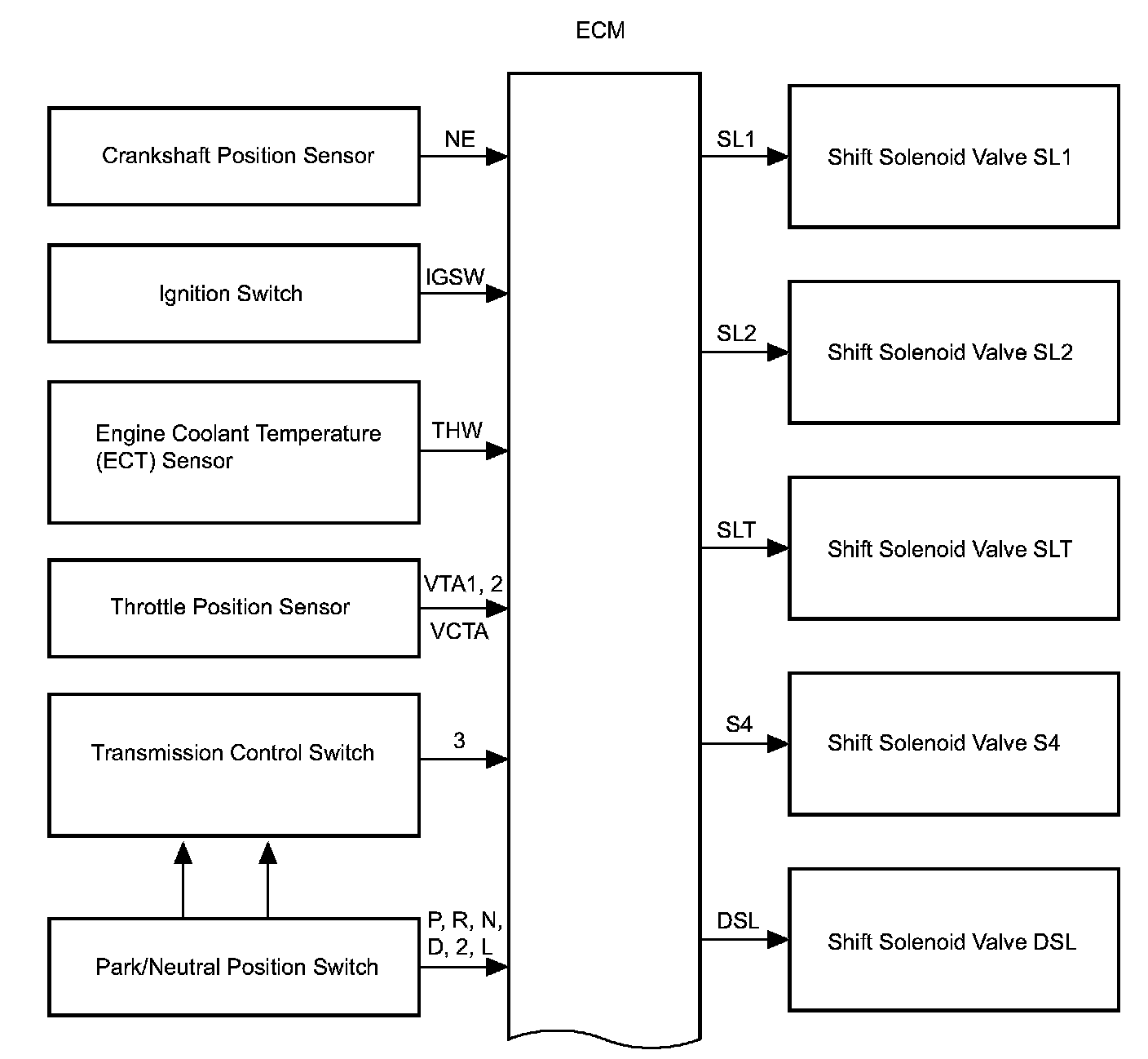 The configuration of the electronic control system in the automatic transaxle is as shown in the chart.