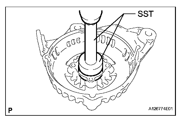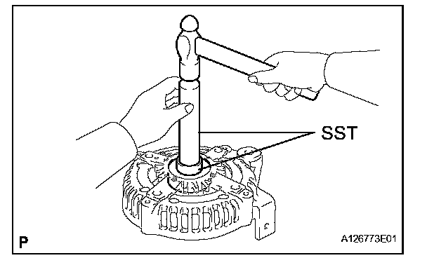b. Using SST and a hammer, tap out the bearing.