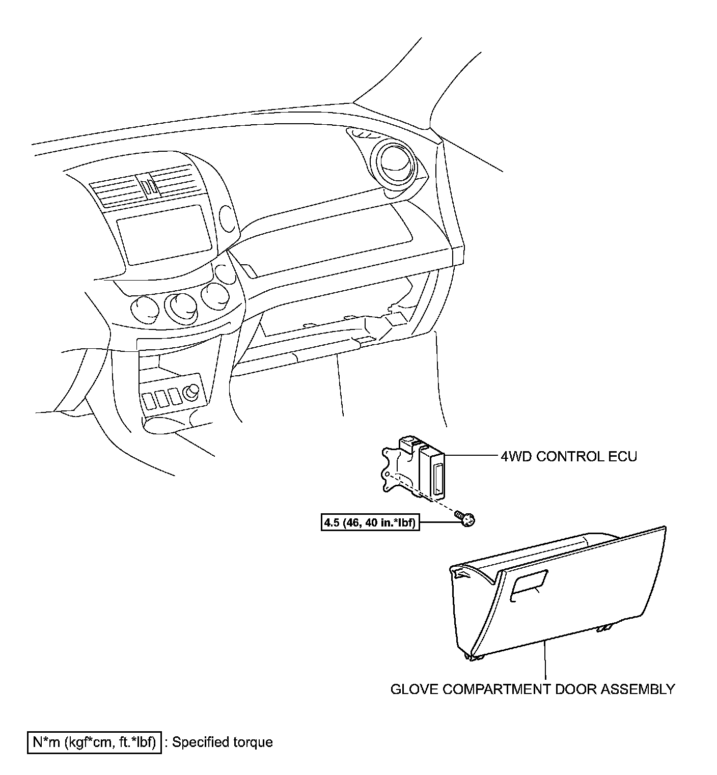 Torque: 4.5 Nm (46 kgf-cm, 40 inch lbs.)