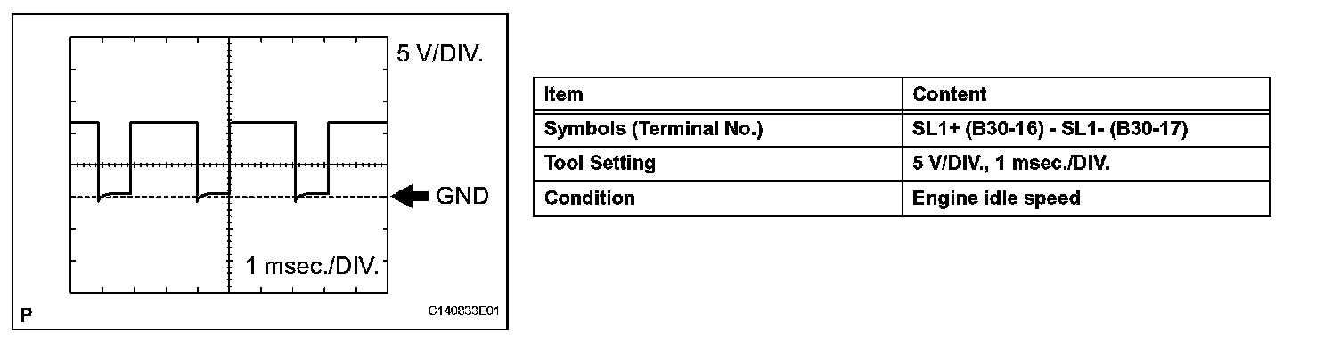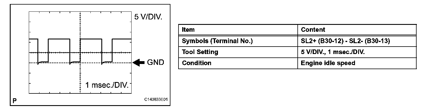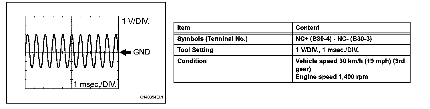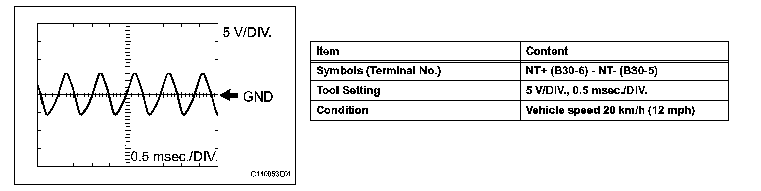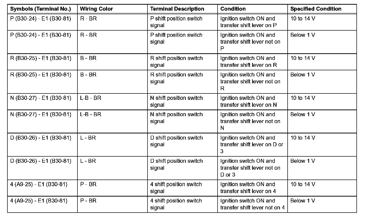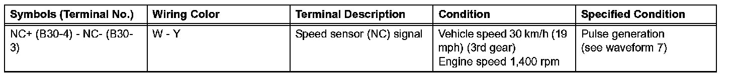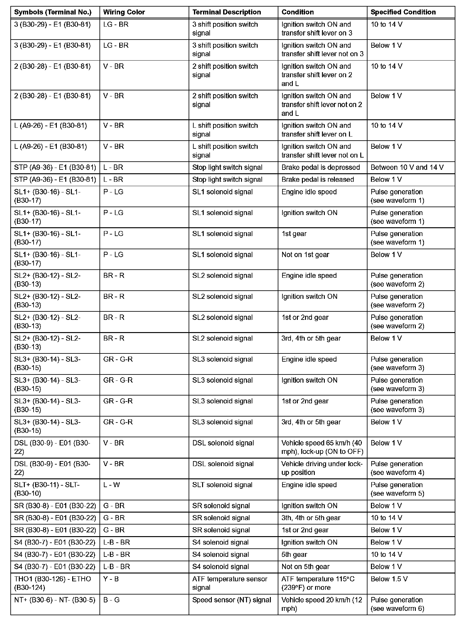 In the table, first follow the information under "Condition". Look under "Symbols (Terminal No.)" for the terminals to be inspected. The standard voltage between the terminals is shown under "Specified Condition".