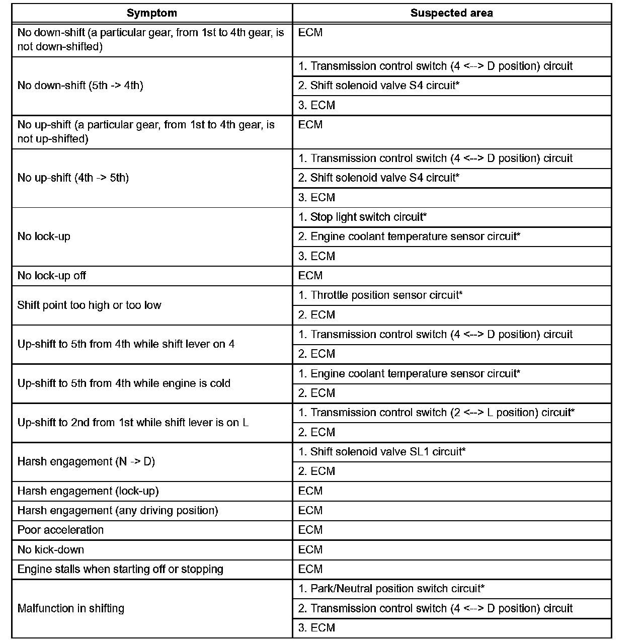 ^ If the problem still occurs even though there are no malfunctions in any of the circuits, check the ECM and replace it if necessary.