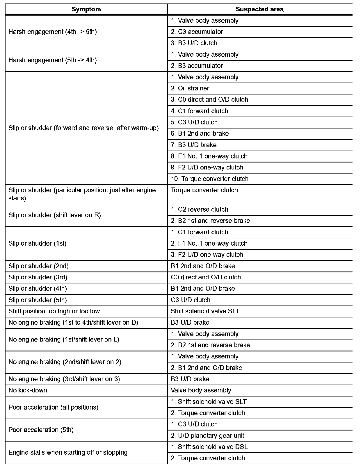 PROBLEM SYMPTOMS TABLEHINT: