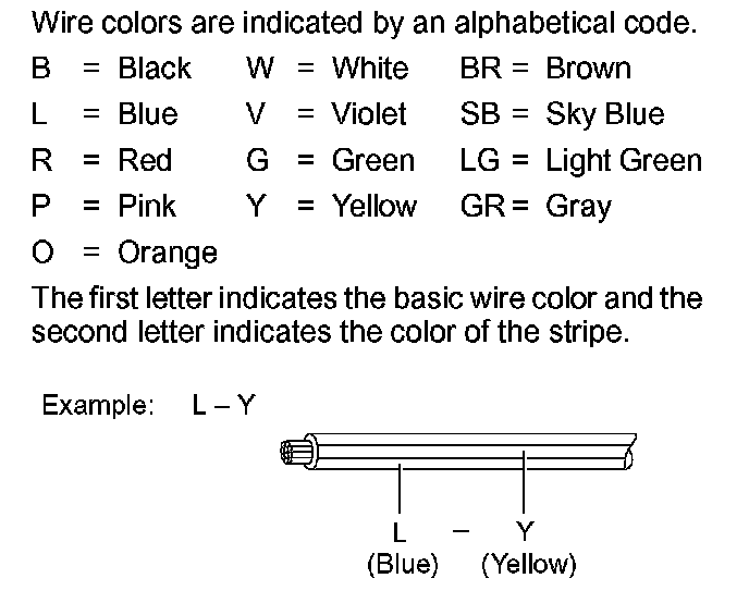 The first character of the code indicates the alphabetical code allocated to the wire harness. The second character indicates a serial number used to distinguish between the ground points in cases when more than one ground point exist on the same wire harness.