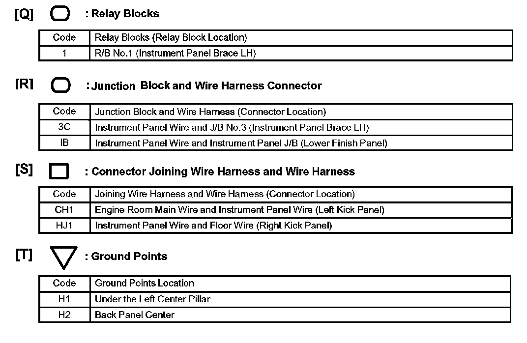 Example : Connector "3C" connects the Instrument Panel Wire and J/B No.3. It is described and is installed on the instrument panel left side.