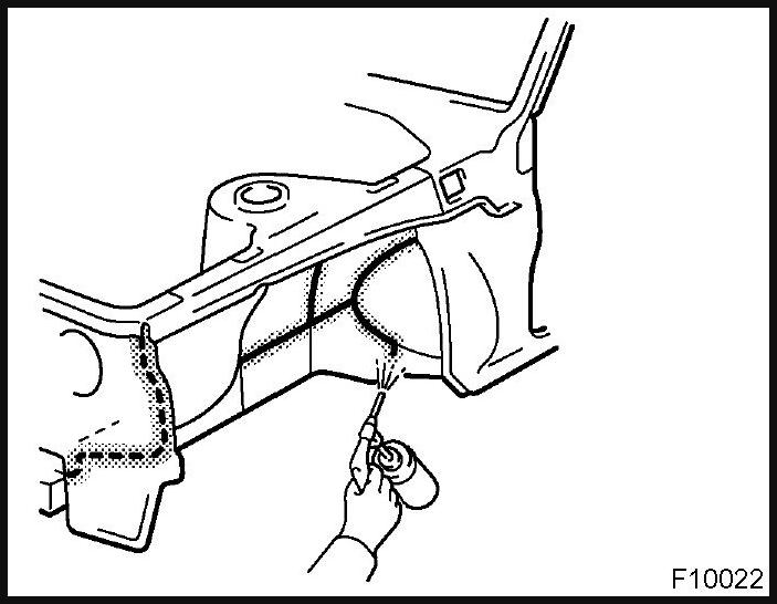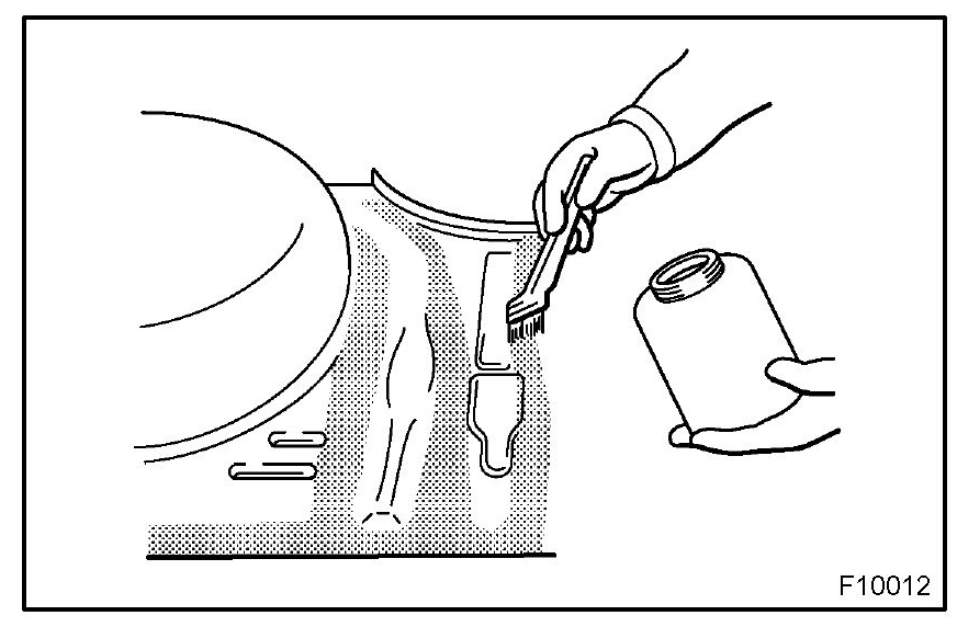 1. To prevent corrosion and protect the body from damage by flying stones, etc., apply anti-chipping paint to the rocker panel, wheel arch areas, valance panel, etc.