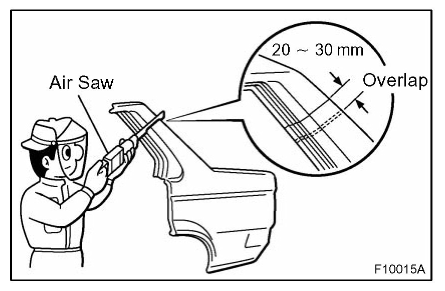 1. For joint areas, rough cut the new parts, leaving 20 - 30 mm (0.79 - 1.18 in.) overlap.