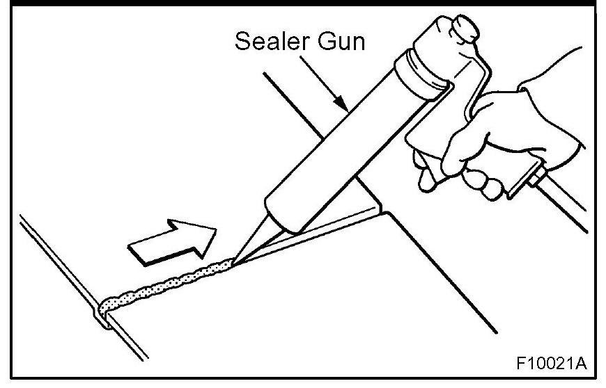 1. For water-proofing and anti-corrosion measures, always apply the body sealer to the body panel seams and hems of the doors, hoods, etc.