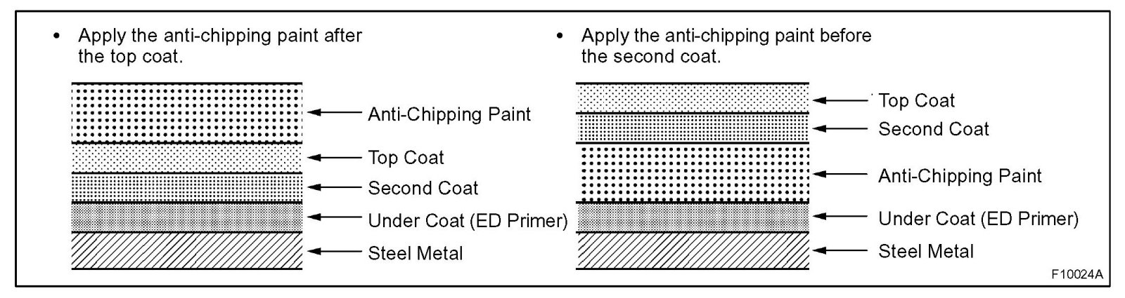 HINT: Depending on the model or the application area, there are cases where the application of anti-chipping paint is necessary before the second coat or after the top coat.