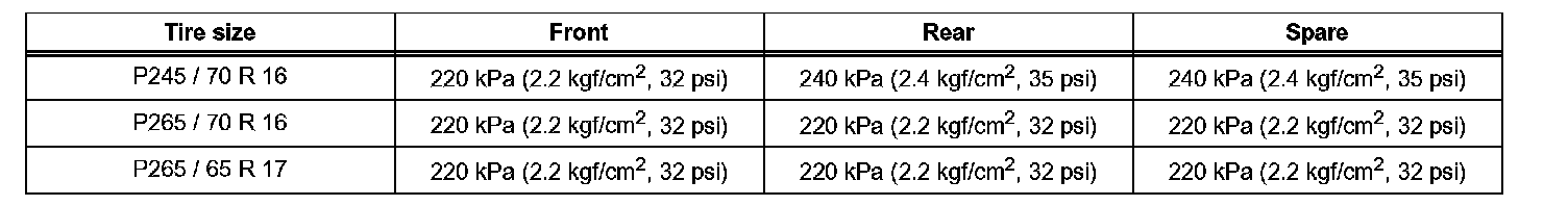 a. Set the tire air pressure for all wheels, including the spare, to the specified value.