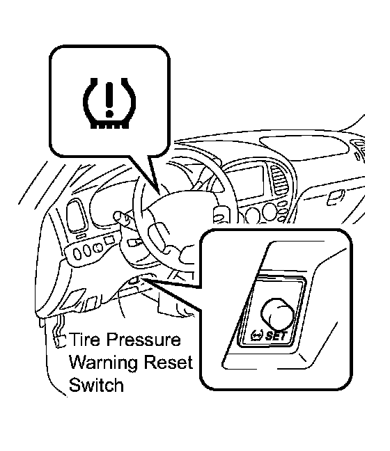 b. Keep the tire pressure warning reset switch pressed for 3 seconds or more with the ignition switch on.