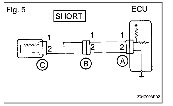 CHECK FOR SHORT CIRCUITa. If the wire harness is ground shorted (Fig. 5), locate the section by conducting a resistance check with the body ground.