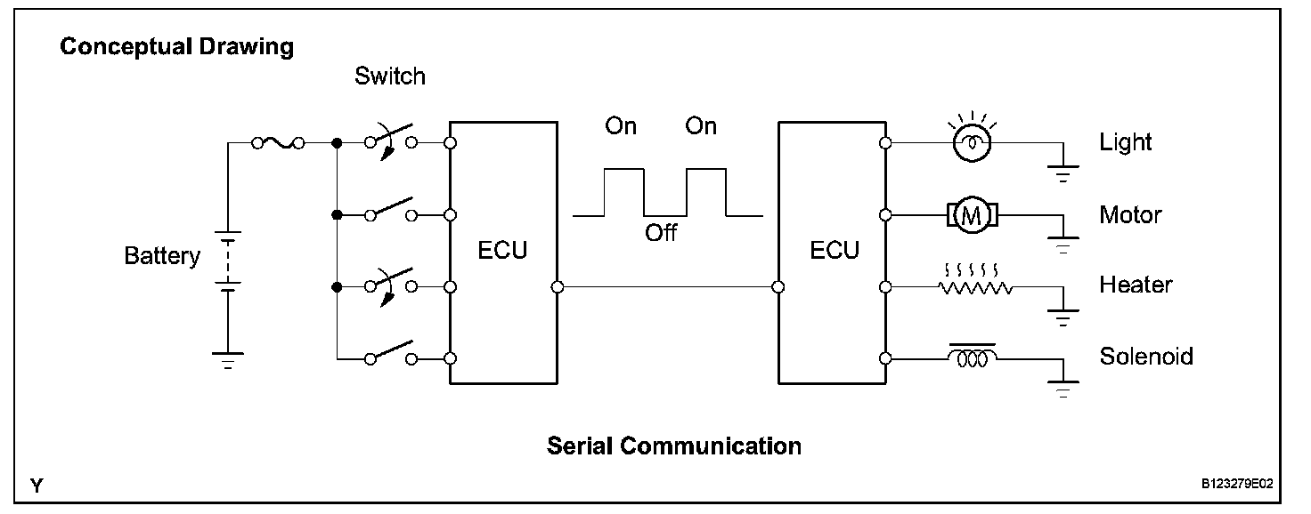 a. The SEQUOIA multiplex communication system uses serial communication, which converts multiple pieces of information into serial communication data. As a result, they can be transmitted through a single communication wire.