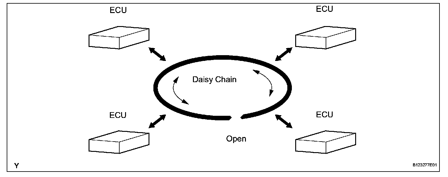 1. The BEAN (Body Electronics Area Network) uses the ring and bus styles of networks to connect ECUs. This connection style is called a daisy chain. In the daisy chain, communication can be maintained even if there is an area that has an open circuit.