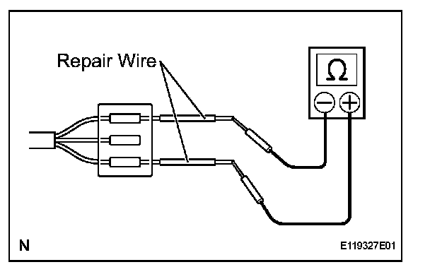 b. If it is impossible to check continuity from the rear of the connector, then use a repair wire to check the connector.