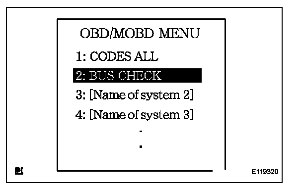 a. Select "BUS CHECK" from the "OBD/MOBD MENU" screen.