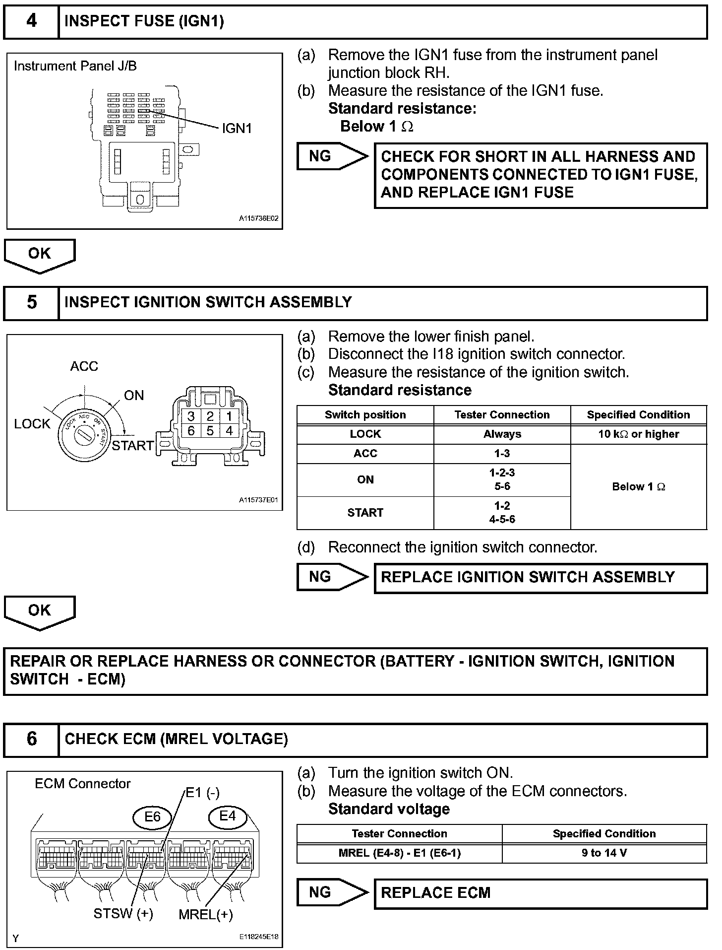 This signal causes current to flow to the coil, closing the contacts of the EFI relay and supplying power to terminal +B of the ECM.