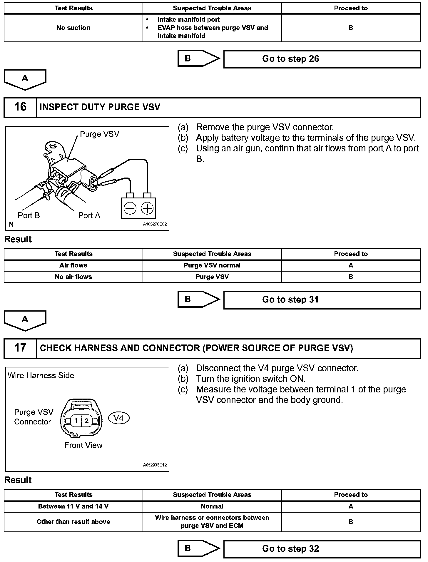While the engine is running and the purge Vacuum Switching Valve (VSV) is ON (open), the ECM monitors the purge flow by measuring the EVAP pressure change. If negative pressure is not created, the ECM begins the 2nd monitor.
