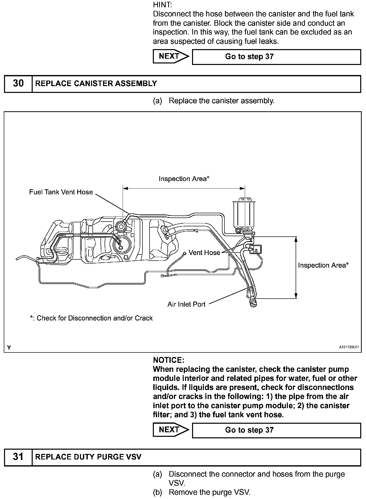 HINT: After a repair, check Monitor Status by performing the key-off monitor confirmation and purge flow monitor confirmation described below.