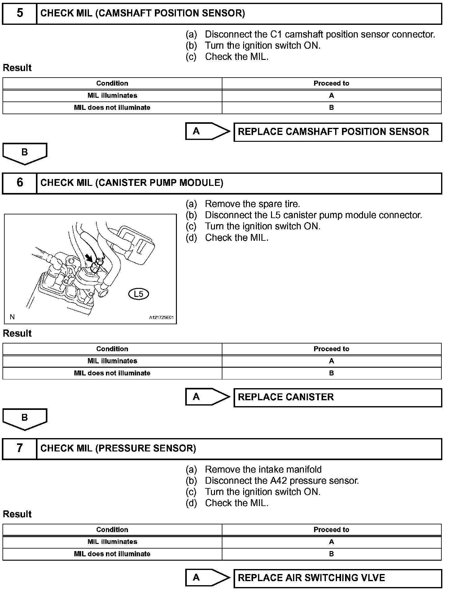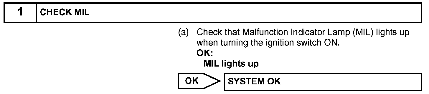 HINT: Under normal conditions, the MIL is illuminated for several seconds when the ignition switch is first turned to ON. The MIL goes off when the engine is started.