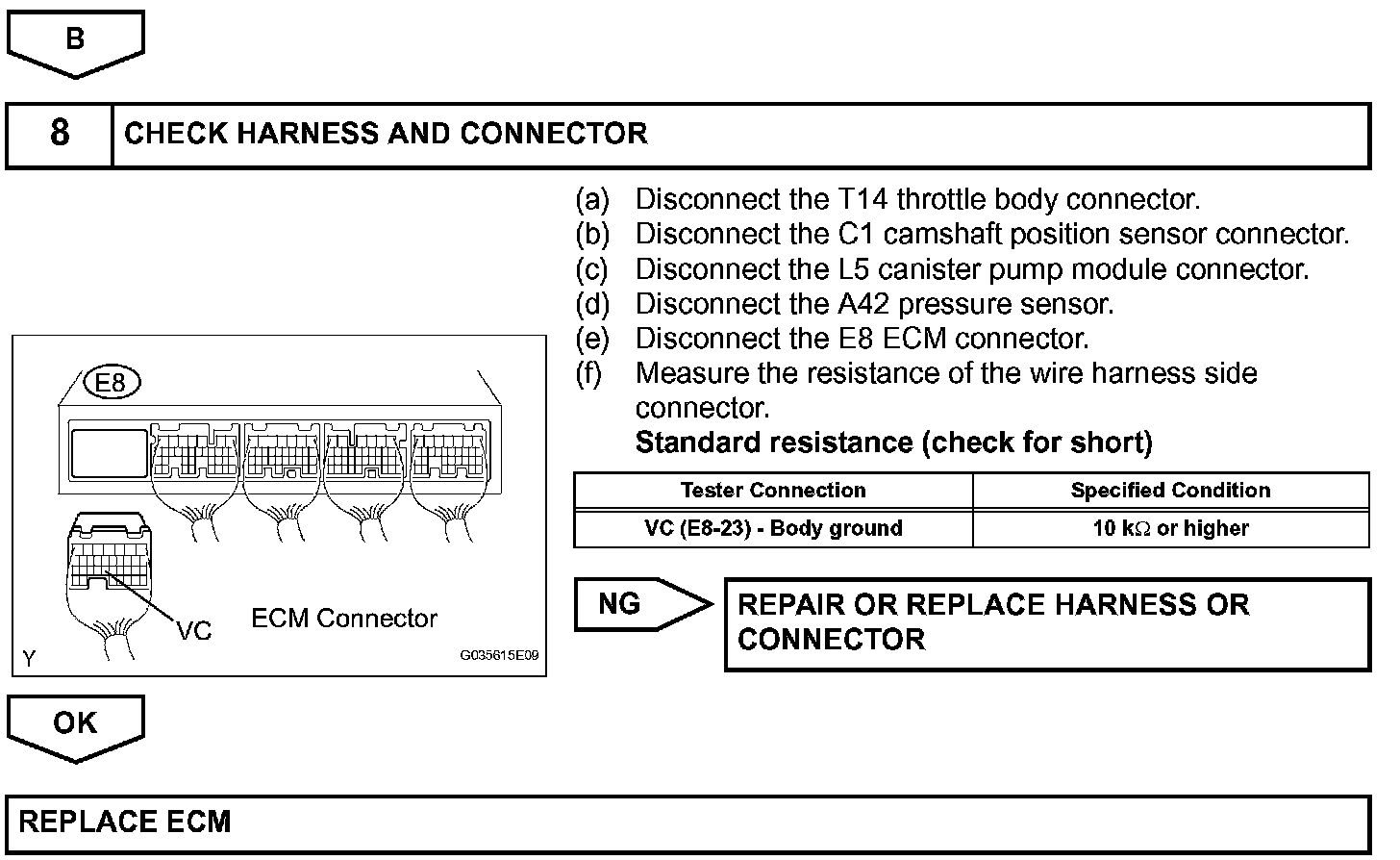 When the VC circuit is short-circuited, the microprocessor in the ECM and sensors that are supplied power through the VC circuit are inactivated because the power is not supplied from the VC circuit. Under this condition, the system does not start up and the MIL does not illuminate even if the system malfunctions.