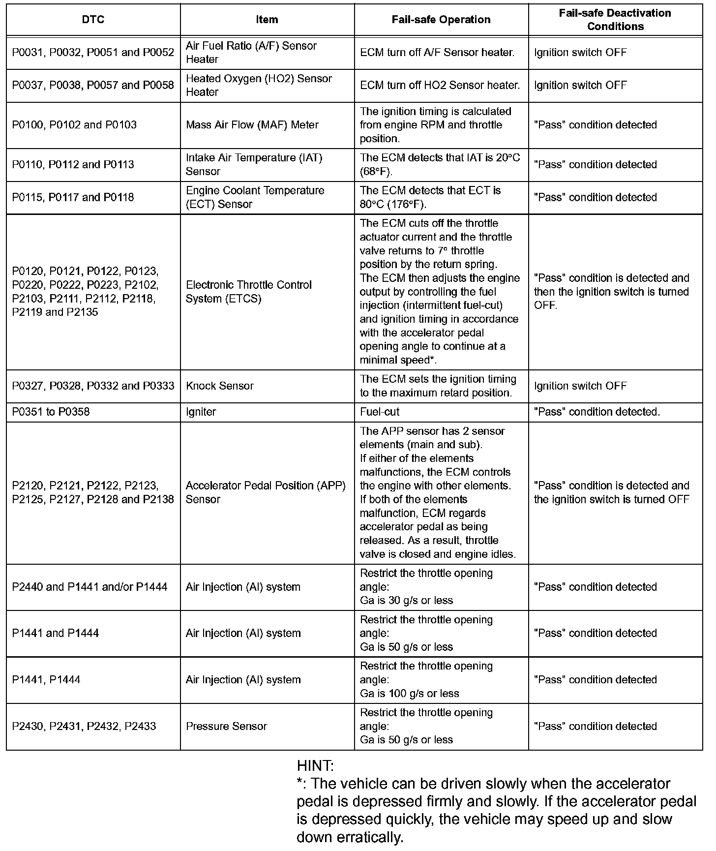 If any of the codes are recorded, the ECM enters the fail-safe mode.