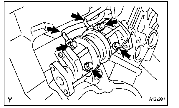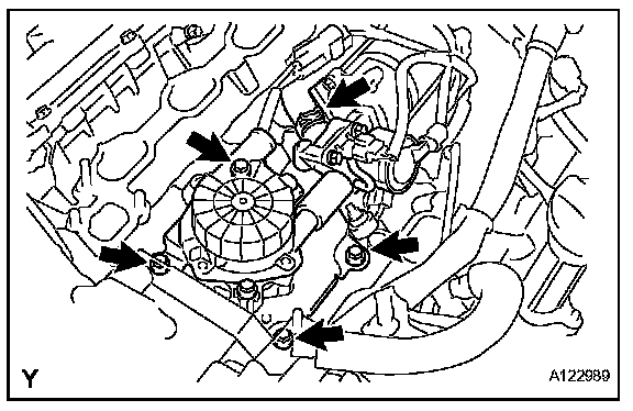 b. Install 2 new gaskets and 2 No.2 air switching valves with the 4 bolts to the rear water by-pass joint.