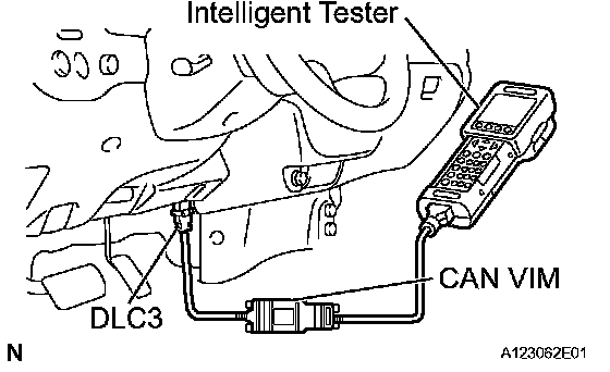 1) Connect a intelligent tester to the Controller Area Network Vehicle Interface Module (CAN VIM). Then connect the CAN VIM to the Date Link Connector 3 (DLC3).