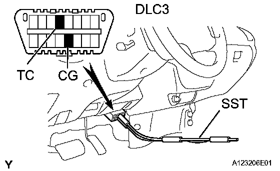 2) Using SST, connect terminals TC and CG of the DLC 3.