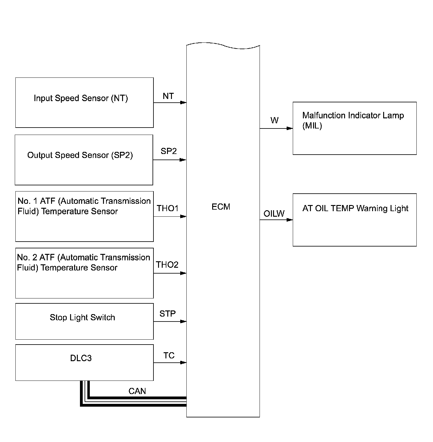 a. The Electronic Controlled Automatic Transmission (ECT) is an automatic transmission that electronically controls shift timing using the Engine Control Module (ECM). The ECM detects electrical signals that indicate engine and driving conditions, and controls the shift point, based on driver habits and road conditions. As a result, fuel efficiency and power transmission performance are improved. Shift shock has been reduced by controlling the engine and transmission simultaneously.