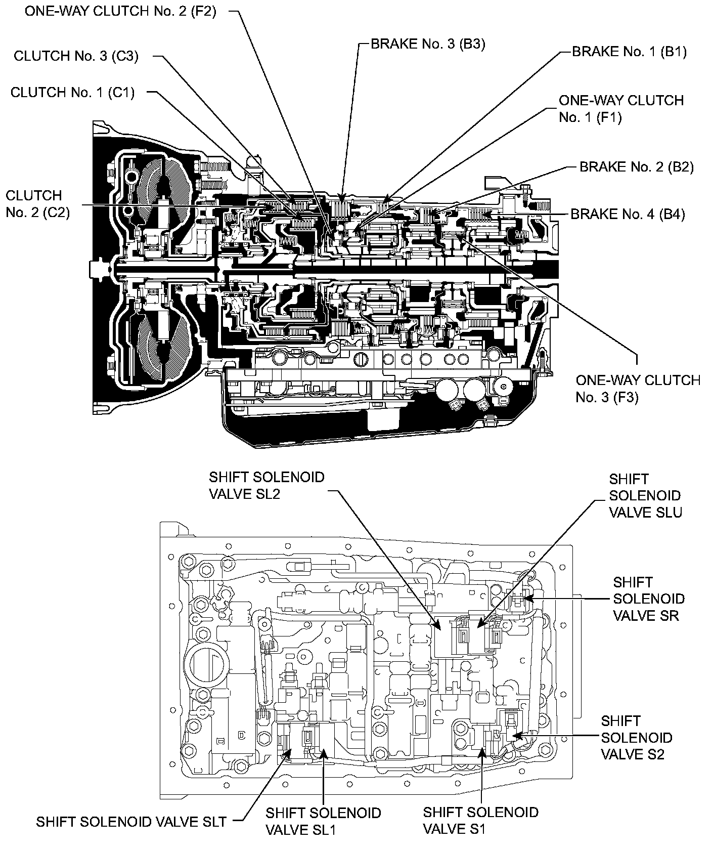 The configuration of the electronic control system in the A750E automatic transmission is as shown in the chart.