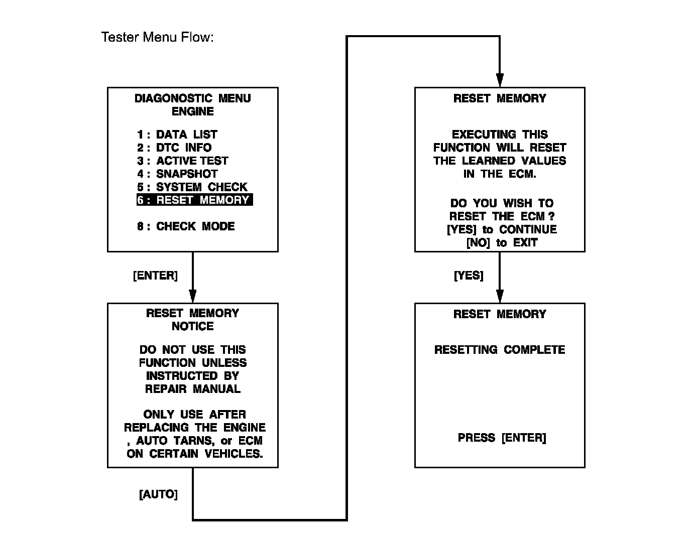 CAUTION: After performing the RESET MEMORY procedures, be sure to perform the ROAD TEST as described earlier. Road Test