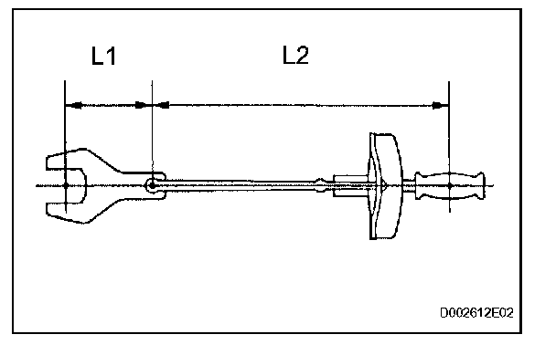 1. Use the formula below to calculate special torque values for situations where SST or an extension tool is combined with a torque wrench.