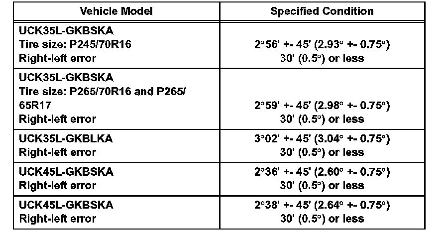 Toe-in (total) (continued):