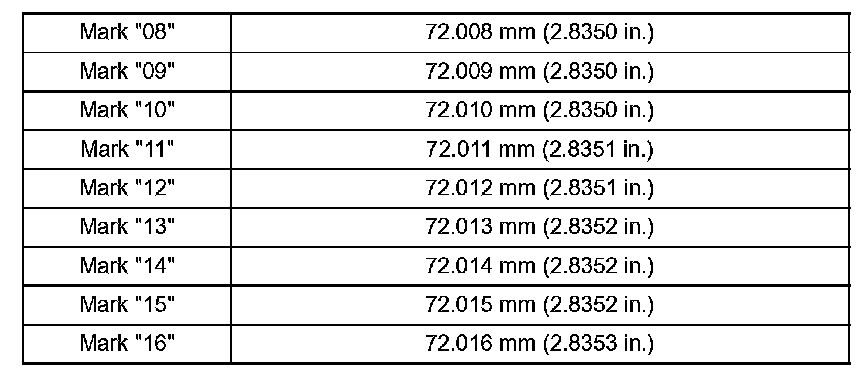 Main Journal Diameter 66.988 to 67.000 mm (2.6373 to 2.6378 inch)