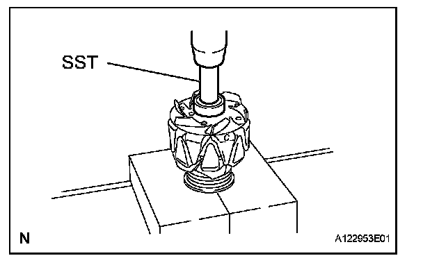 b. Using SST and a hammer, tap out the bearing.