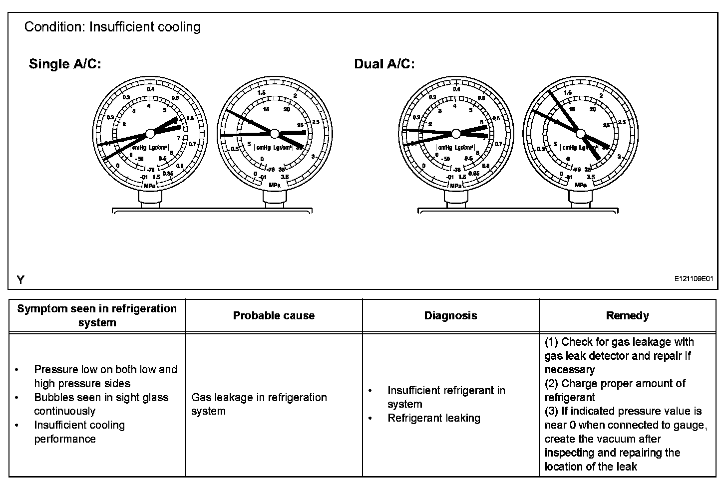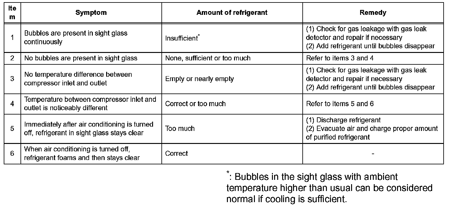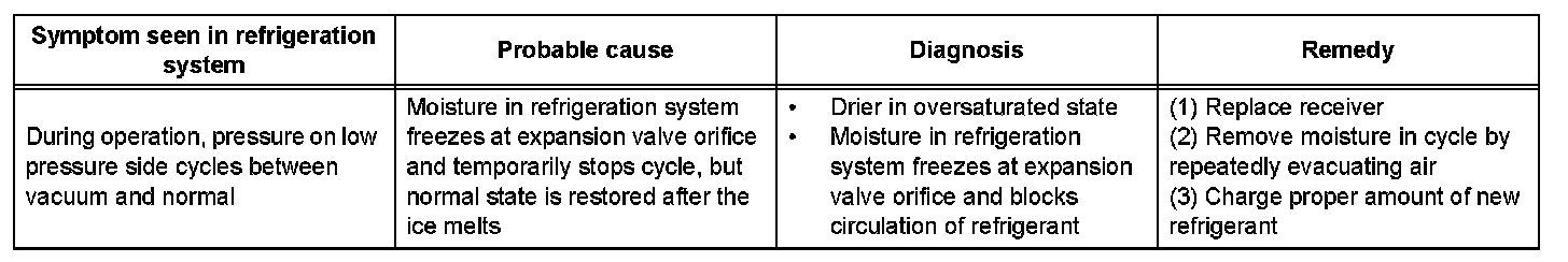 NOTE: These indications are shown when the refrigeration system has been opened and the refrigerant has been charged without vacuum purging.