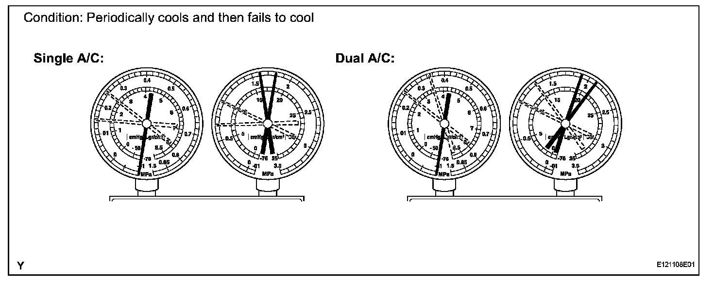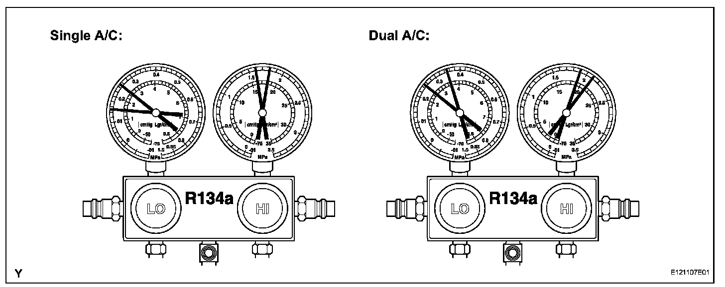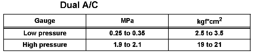 a. This is a method for checking the A/C system by using a manifold gauge set. Read the manifold gauge pressure when the conditions below are met. Test conditions: