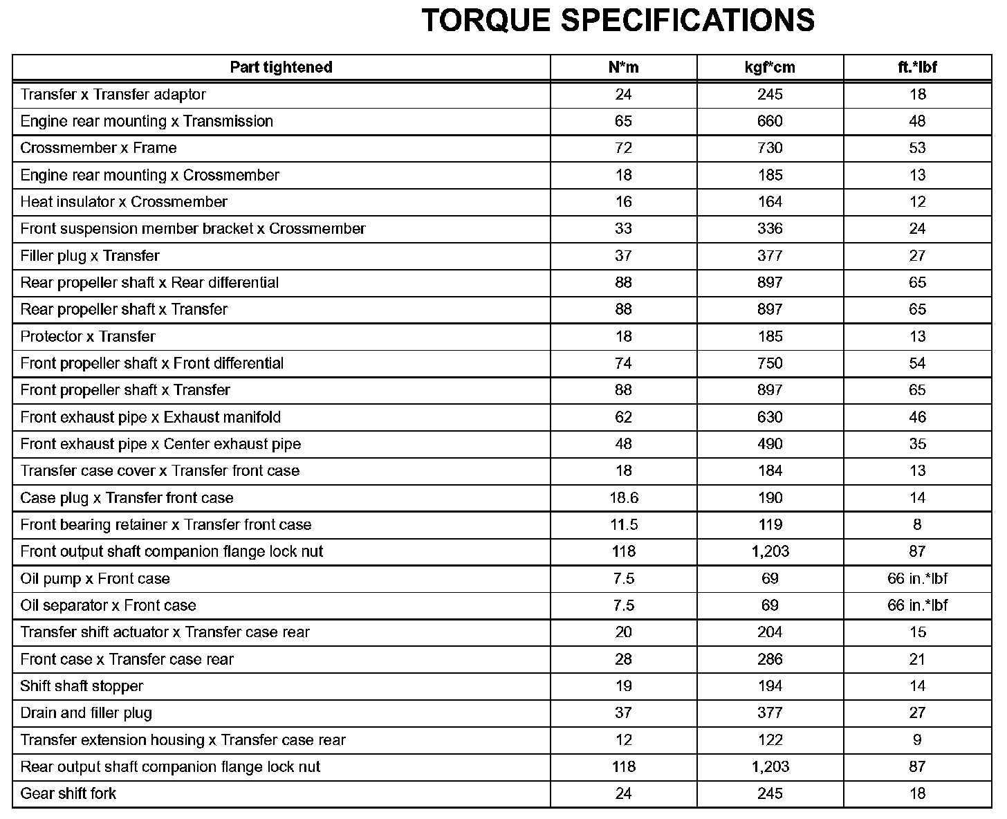 Transfer-Torque Specifications: