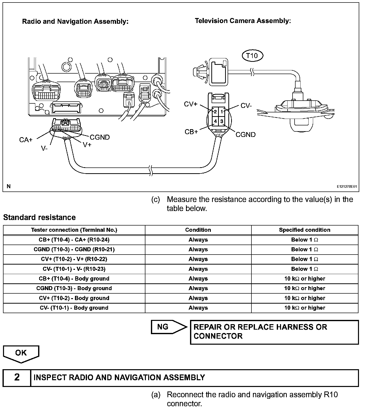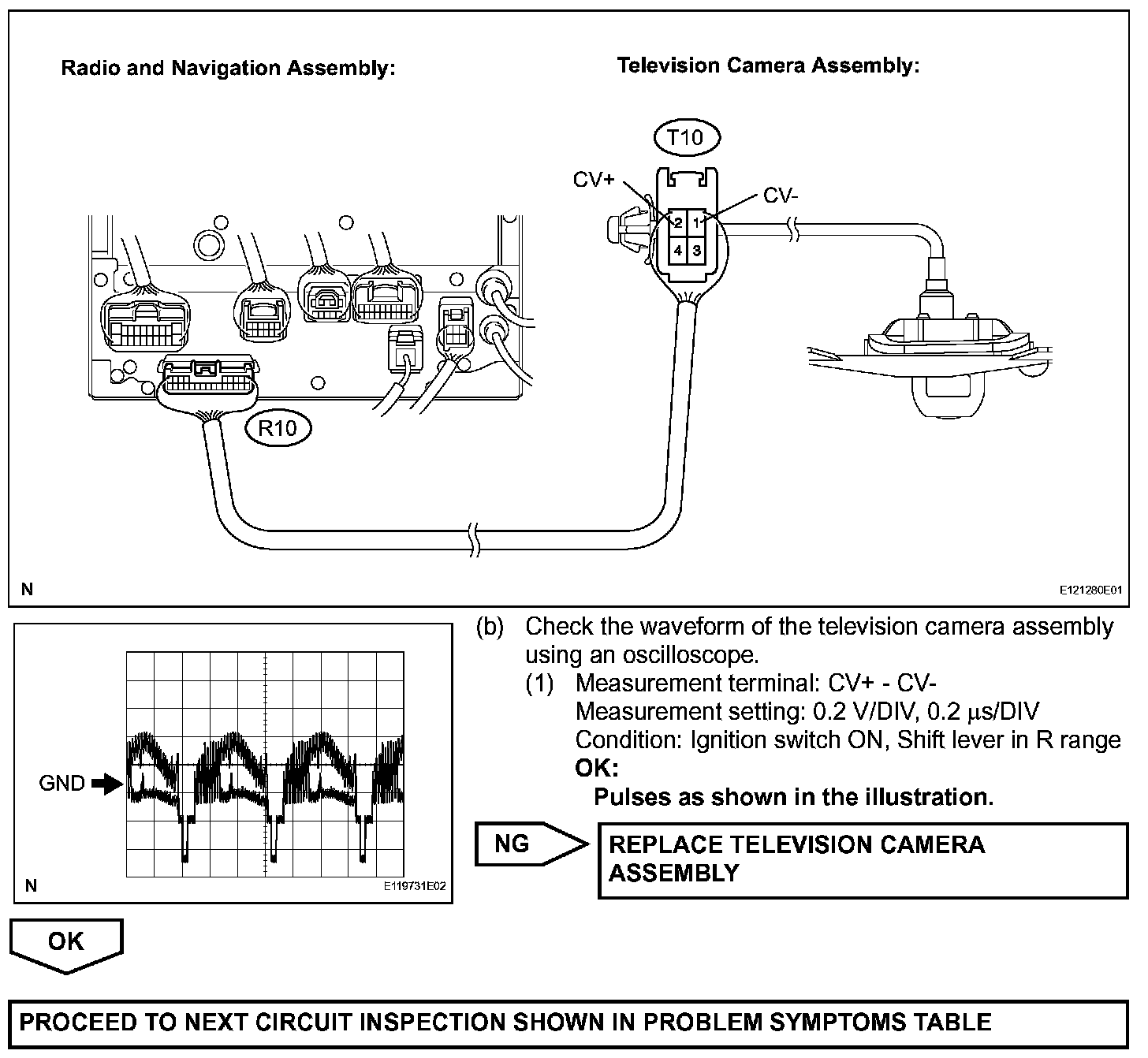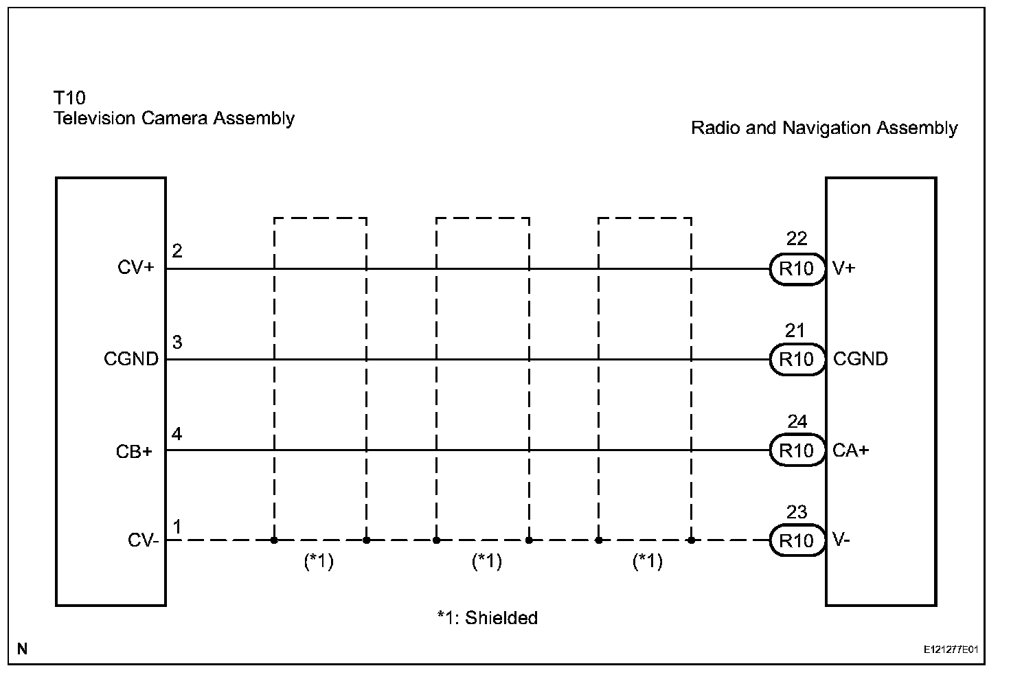 Display Signal Circuit between Radio and Navigation Assembly and Television Camera Assembly DESCRIPTION This is the display signal circuit of the television