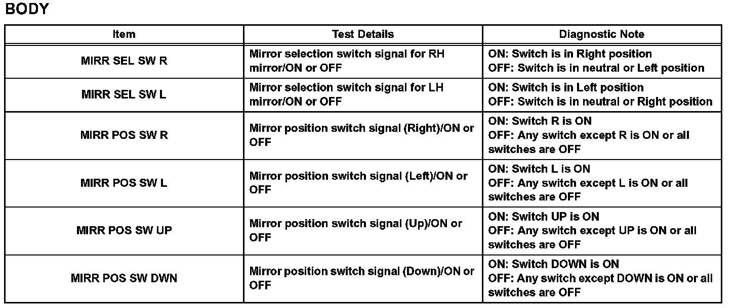 DATA LISTHINT: Using the DATA LIST displayed on the intelligent tester, you can read the value of the switch, sensor, actuator, etc.. without parts removal. Reading the DATA LIST as the first step of troubleshooting is one way to shorten the labor time.