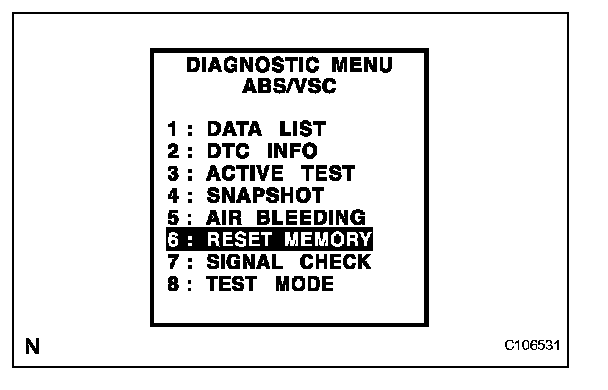 c. Operate the intelligent tester to erase the codes (select "RESET MEMORY").