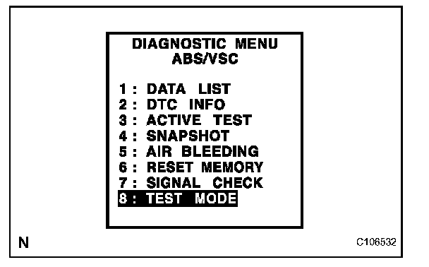3. Check that the ABS warning light and VSC light blink (test mode).