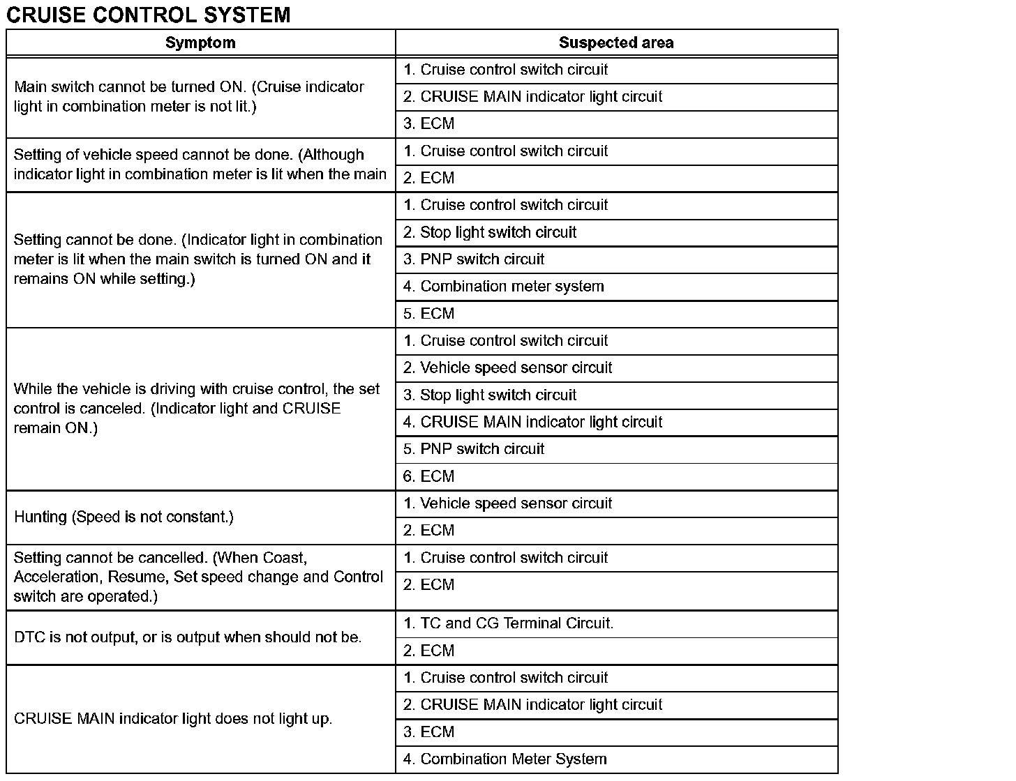 PROBLEM SYMPTOMS TABLEProblem Symptoms Table - Cruise Control System: