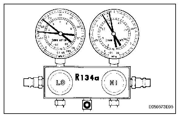 1. INSPECT REFRIGERANT PRESSURE WITH MANIFOLD GAUGE SET